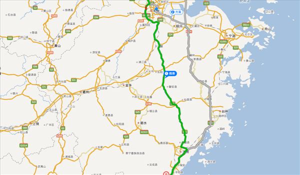 长深高速、上塘高架、沪昆高速、诸永高速、沈海高速,用时7小时10分钟,共436公里。