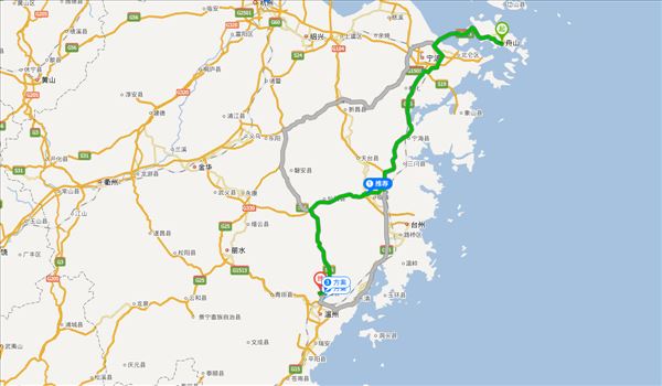 甬舟高速、宁波绕城高速、沈海高速、温州绕城高速,用时5小时26分钟,共363公里。