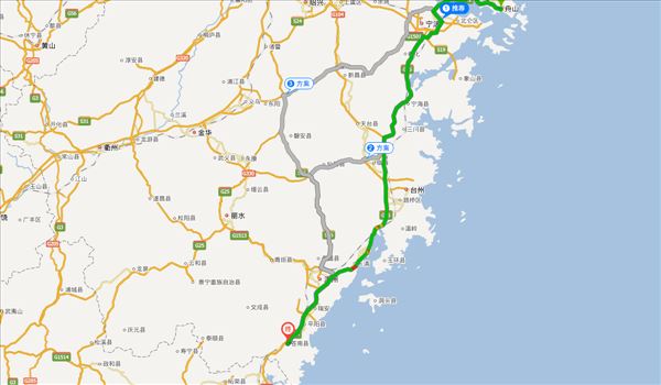 甬舟高速、沈海高速,用时6小时13分钟,共400公里。