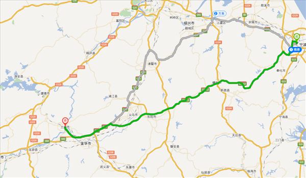 三四省道、三六省道、甬金高速、沪昆高速,用时3小时41分钟,共249公里。