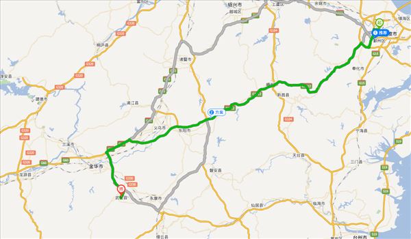 甬金高速、沪昆高速、长深高速,用时3小时31分钟,共256公里。