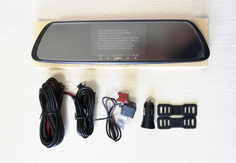 打开包装盒,里面排列的非常整齐,记录仪主机用纸盒子固定住,并在上面放了一层厚厚的白色保护层,数据线和摄像头则分别用纸盒子包裹起来,严密的设计也把记录仪保护得非常好,机身表面没有任何刮痕或磨损。