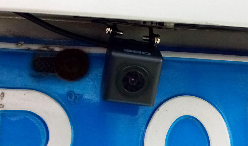用同样的方法将摄像头的线埋好,找到后刹车线,将线接好。在车尾选择一个合适的位置安装摄像头,查妹选的是车牌上方的位置,安装好摄像头后再将接口插好,最后再将多余的线固定好,硬件安装就完成了。