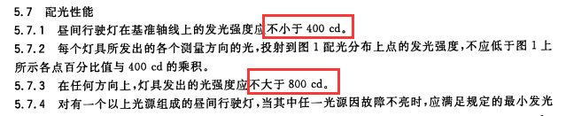汽车昼间行驶灯配光性能(GB23255-2009) 5.7配光性能规定: