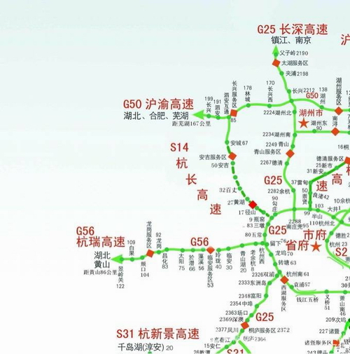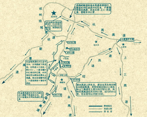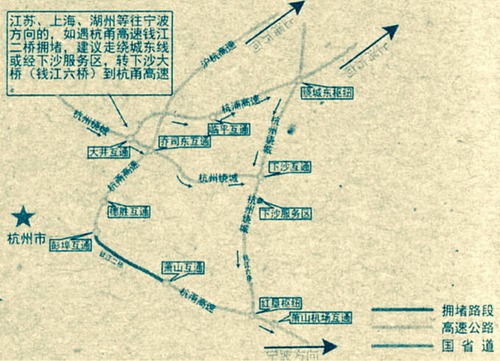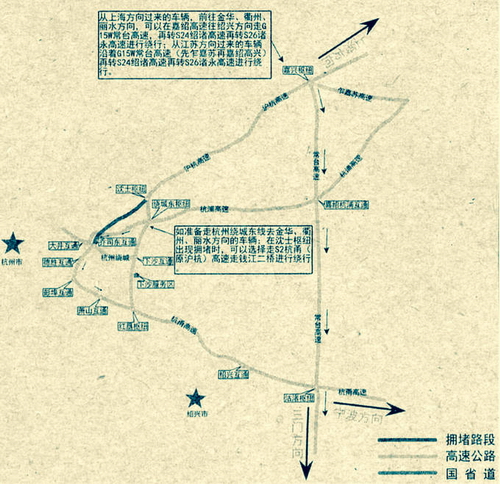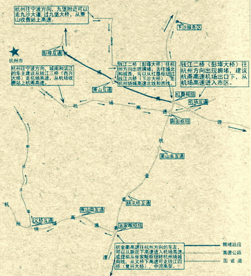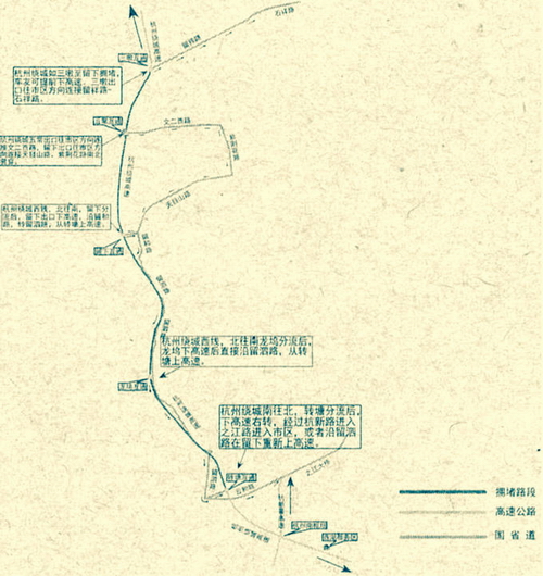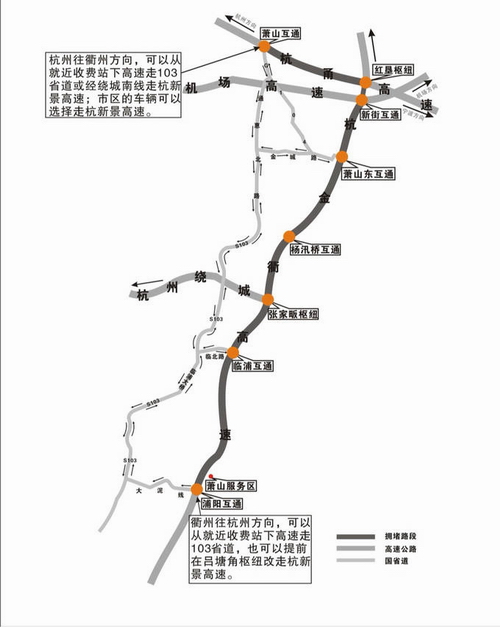 杭甬杭州段(往杭州方向钱江二桥)绕行示意图