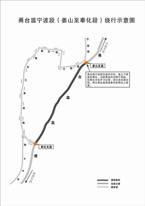 甬台温宁波段(姜山至奉化段)绕行示意图