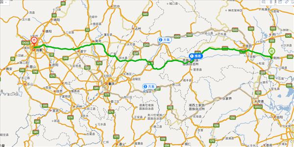 方案一:沪渝高速公路、沪蓉高速公路,用时10小时13分钟,共933公里。(最快、最短)
