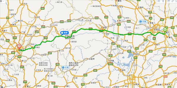 方案二:公路、高新大道公路、三环线公路、白鹤泉东街公路、沪聂线公路、潜阳东路公路、G318公路、猇亭大道公路、虎周公路公路、榔坪街公路、东城路公路、兴盛福路公路、S326公路、S404公路、S202公路、S105公路、S103公路、茶涪公路公路,用时1天1小时34分钟,共1117公里。(不走高速,不用过路费)