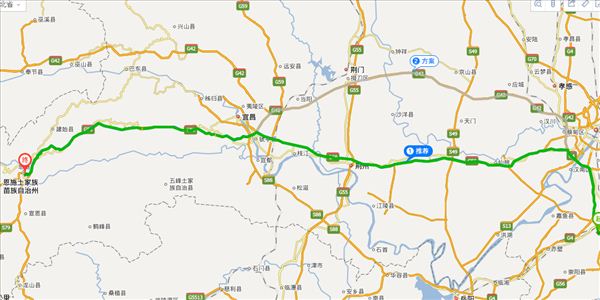 方案二:贺胜桥街公路、武长街公路、三环线公路、白鹤泉东街公路、沪聂线公路、潜阳东路公路、G318公路、猇亭大道公路、虎周公路公路、榔坪街公路、吉阳线公路,用时16小时13分钟,共706公里。(不走高速,不用过路费)