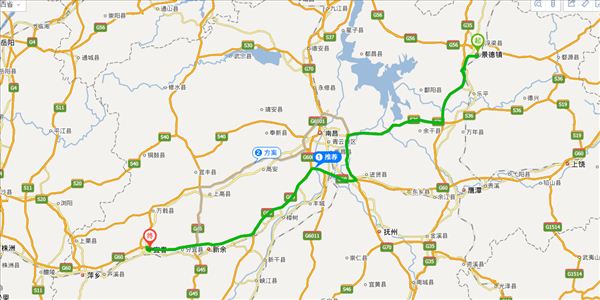 方案二:烟汕线公路、昌万公路公路、昌南大道公路、沪瑞线公路、上高大道公路、万宜公路公路,用时7小时45分钟,共412公里。(不走高速,不用过路费)