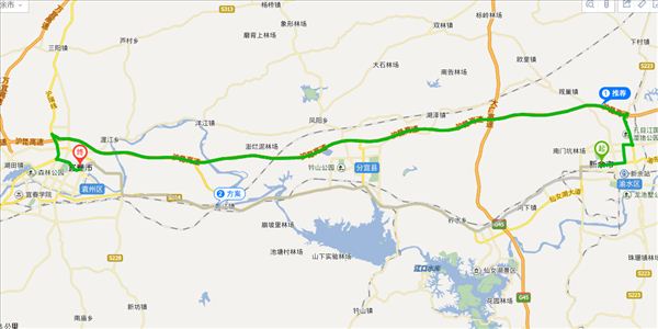 方案二:仙女湖大道公路、S314公路,用时1小时18分钟,共59公里。(不走高速,不用过路费)