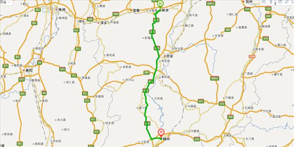 方案二:S315公路、S318公路、井冈山大道公路、京珠线公路,用时6小时2分钟,共300公里。(不走高速,不用过路费)