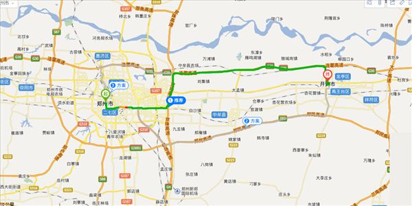 方案三:郑开大道公路,用时1小时31分钟,共66公里。(不走高速,不用过路费)