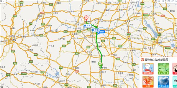 方案二:京港澳高速公路、郑焦晋高速公路,用时3小时21分钟,共303公里。(时间最快)
