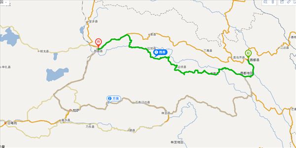 方案一:西景线公路、S303公路、公路、成那线公路,用时1天4小时29分钟,共926公里。(路程最短)
