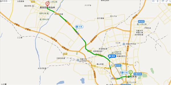 方案三:乌昌路公路,用时0分钟,共36公里。(不走高速,不用过路费)