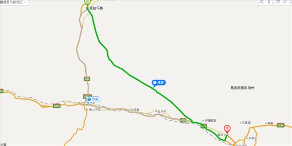 方案二:克榆公路公路、连霍高速公路,用时3小时31分钟,共286公里。(时间最快)