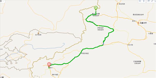 方案二:团结路公路、友好路公路、S318公路、S201公路、克榆公路公路、公路、沙钟线公路、S312公路、迎宾大道公路、阿库线公路、S307公路、乌红线公路、乌喀路公路、帕米尔路公路,用时1天9小时16分钟,共1811公里。(不走高速,不用过路费)