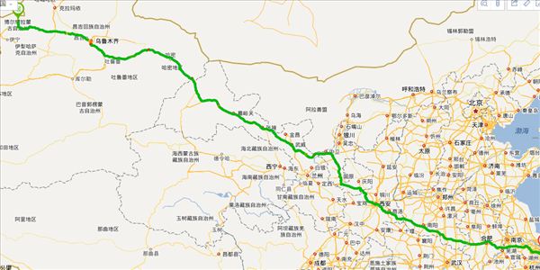 方案二:团结路公路、友好路公路、S318公路、S201公路、克榆公路公路、公路、乌伊西路公路、乌昌路公路、沪霍线公路、阿巴线公路、伊若线公路、米兰路公路、西莎线公路、S303公路、京拉线公路、G109公路、西倒一级公路、南环路公路、南山路公路、西兰路公路、迎宾北路公路、悟真寺二号隧道公路、G312(旧)公路、北环路公路、X010公路、京珠线公路、合六路公路、S105公路、S124公路、应天大街高架公路、横洛线公路、外环高架公路、环北路公路、金城快速路公路、锡太公路公路、沪宜公路公路、沪嘉高速公路,用时4天10小时40分钟,共5298公里。(不走高速,不用过路费)