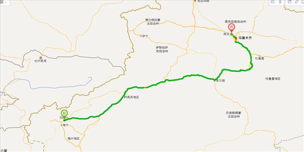 方案三:乌红线公路、G314公路、S307公路、阿库线公路、S321公路、伊若线公路、阿巴线公路、乌昌路公路,用时1天1小时56分钟,共1347公里。(不走高速,不用过路费)