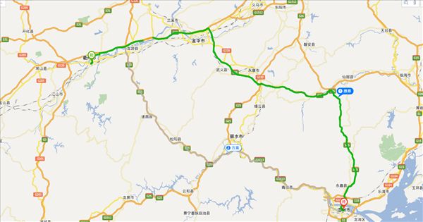 方案二:沪昆高速公路、龙丽高速公路、长深高速公路、温丽高速公路,用时3小时50分钟,共285公里。