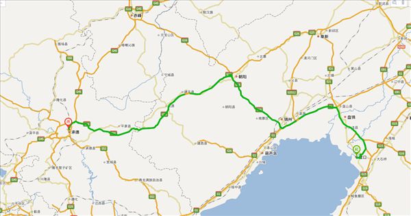 方案三:向海大道公路、环城西路公路、庄林线公路、京哈线公路、S307公路、宝锦线公路、孤牤线公路、朝巴线公路、京沈线公路,用时10小时7分钟,共531公里。(不走高速,不用过路费)
