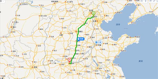 方案一:廊涿公路公路、廊涿高速公路、京港澳高速公路、陇海路快速通道公路,用时7小时12分钟,共685公里。(最快)