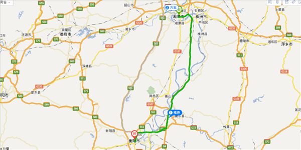 方案一:京港澳高速公路、衡邵高速公路,用时1小时50分钟,共146公里。(最快)