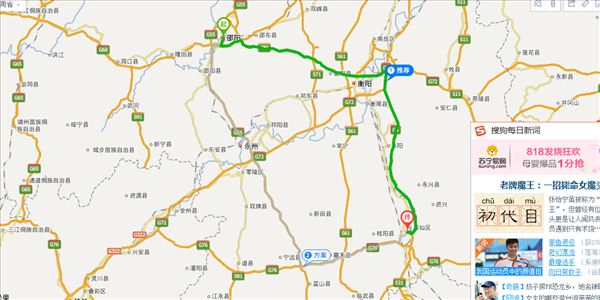 方案二:沪昆高速公路、衡邵高速公路、京港澳高速公路,用时3小时46分钟,共313公里。(时间最快)