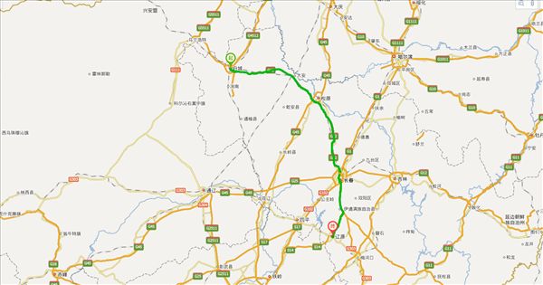 方案二:珲乌高速公路、西部快速路公路、长营高速公路、伊辽高速公路、仙城大街公路,用时5小时1分钟,共464公里。(时间最快)