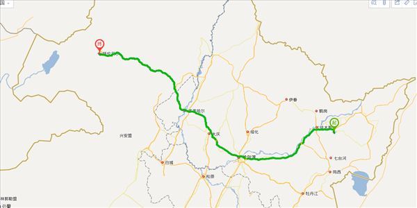 方案二:世纪大道公路、哈同线公路、长安东路公路、友谊路公路、天恒大街公路、绥满线公路、中三路公路、让杜路公路、齐杜公路公路、同南街公路、黎明路公路、S302公路,用时1天0小时12分钟,共1271公里。(不走高速,不用过路费)