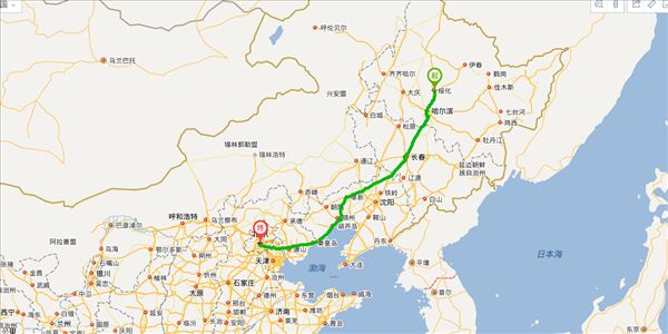 方案二:S305公路、黑大公路公路、阳明滩大桥公路、哈前公路公路、京哈线公路、京哈路公路、四环城路公路、南一经街公路、S302公路、S105公路、S106公路、X722公路、大锦线公路、渤海大道公路、关城北路公路、北环西路公路、永平大街公路、G102公路、潞苑南大街公路、朝阳路公路,用时1天2小时53分钟,共1393公里。(不走高速,不用过路费)