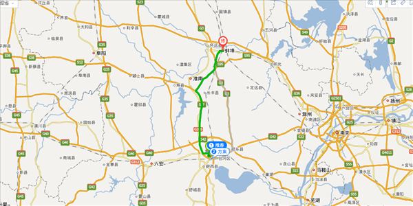 2、该路线途径合肥绕城高速公路、蚌合高速公路、蚌淮高速公路、京台高速公路