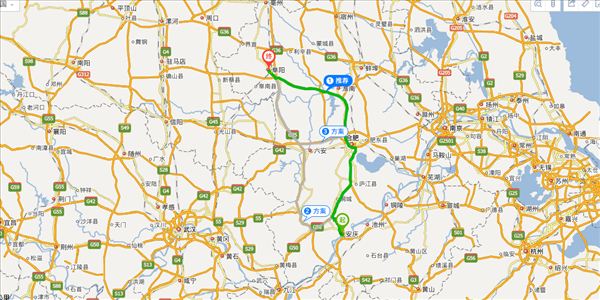 方案一:沪渝高速公路、合安高速公路、京台高速公路、合肥绕城高速公路、蚌合高速公路、滁新高速公路,用时4小时22分钟,共383公里。(最快、最短)