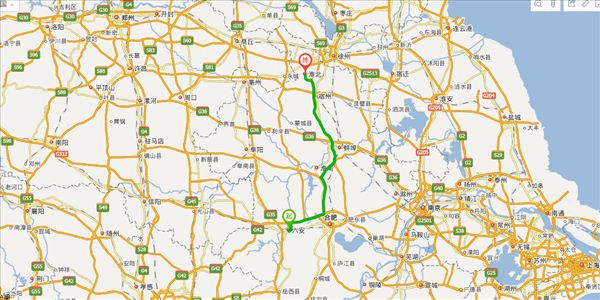 方案一:迎宾大道公路、沪陕高速公路、蚌合高速公路、蚌淮高速公路、京台高速公路,用时3小时32分钟,共323公里。(最快、最短)
