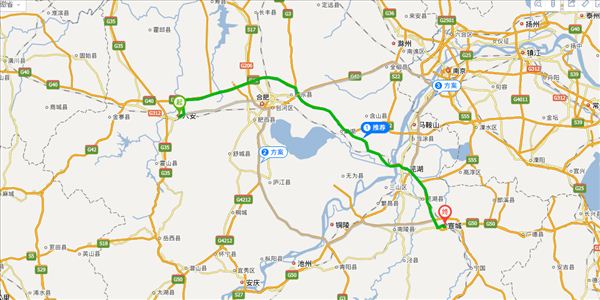 方案一:沪霍线公路、合六路公路、长江西路公路、S105公路、X016公路、X116公路、芜合高速公路、沪渝高速公路、X019公路,用时5小时11分钟,共269公里。(路程最短)
