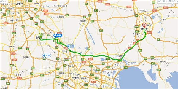 京沪高速、京津塘高速、武宁线、滨保高速、唐津高速,用时2小时25分钟,共176公里。