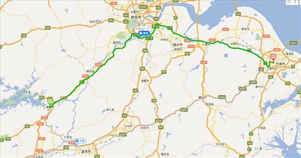 方案一:杭新景高速公路、长深高速公路、杭州绕城高速公路、沪昆高速公路、杭州湾环线高速公路,用时3小时14分钟,共285公里。(最快)