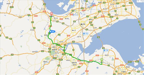 方案一:杭州湾环线高速公路、沪昆高速公路、杭州绕城高速公路、长深高速公路,用时2小时19分钟,共191公里。(最快)