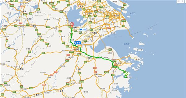 方案一:甬台温复线高速公路、沈海高速公路、杭州湾环线高速公路、沪昆高速公路、杭州绕城高速公路、长深高速公路,用时3小时26分钟,共299公里。(最快)