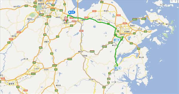 方案二:沈海高速公路、杭州湾环线高速公路,用时2小时25分钟,共187公里。(时间最快)