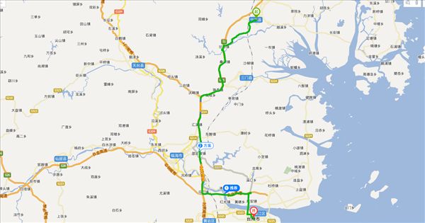 方案二:城岭线公路、沈海高速公路、台金高速公路,用时1小时37分钟,共106公里。(时间最快)
