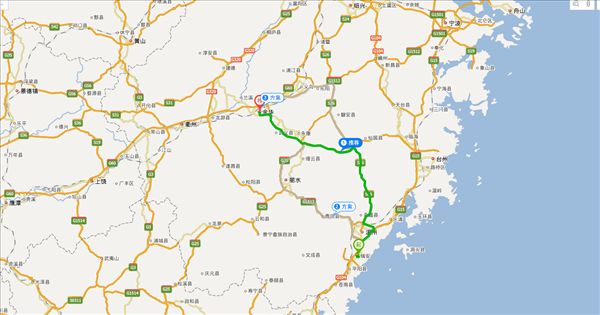方案三:温瑞大道公路、京福线公路、温寿线公路,用时6小时10分钟,共269公里。(不走高速,不用过路费)