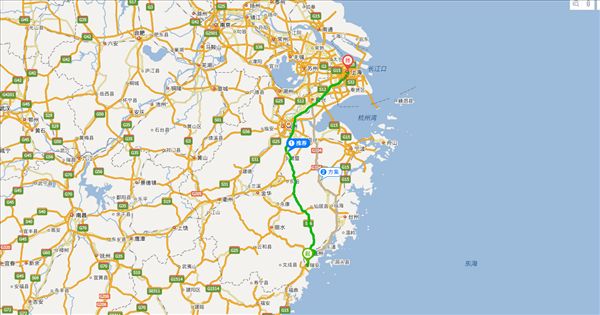 方案二:沈海高速公路、常台高速公路、沪昆高速公路,用时6小时16分钟,共483公里。(时间最快)
