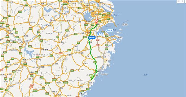 方案三:京福线公路、温瑞大道公路、杭沈线公路、钱陶公路公路、东湖高架公路、沪瑞线公路,用时12小时19分钟,共561公里。(不走高速,不用过路费)