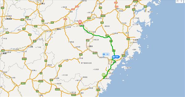 方案三:京福线公路、温瑞大道公路、温寿线公路,用时7小时14分钟,共310公里。(不走高速,不用过路费)
