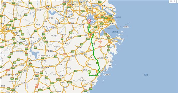 方案二:五六省道公路、沈海高速公路、温州绕城高速公路、诸永高速公路、沪昆高速公路、杭州绕城高速公路、长深高速公路,用时6小时8分钟,共483公里。(时间最快)