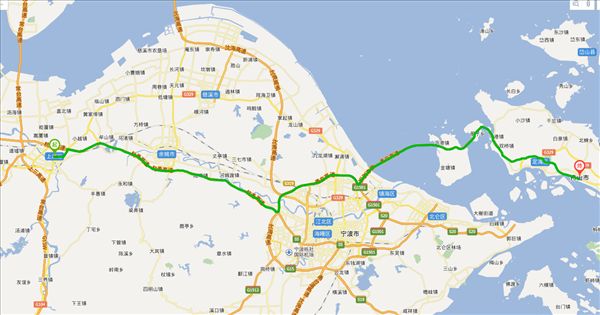 方案二:杭州湾环线高速公路、甬舟高速公路,用时2小时0分钟,共155公里。(时间最快)