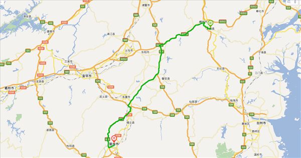 方案一:S310公路、诸永高速公路、东永高速公路、石四线公路、碧街路公路、温寿线公路,用时3小时46分钟,共192公里。(路程最短)