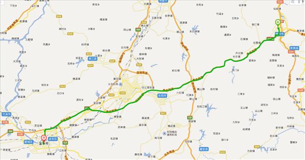 方案三:兴平东路公路、环城南路公路、四海大道公路、金义快速路公路,用时3小时3分钟,共148公里。(不走高速,不用过路费)
